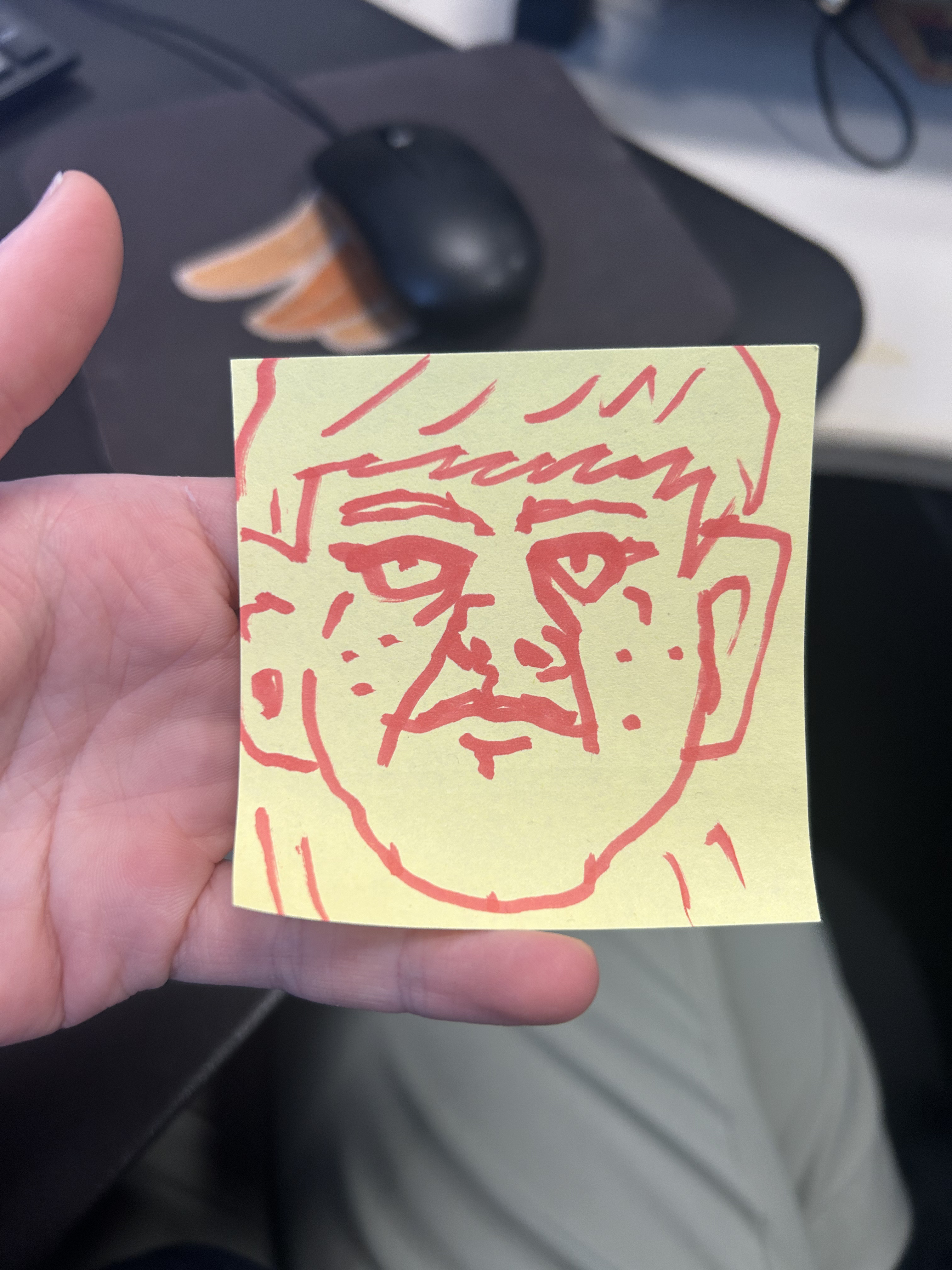 Every once in a while I doodle on a sticky note and i’m like oh yeah I like that dumb drawing. Here are some recent ones.
