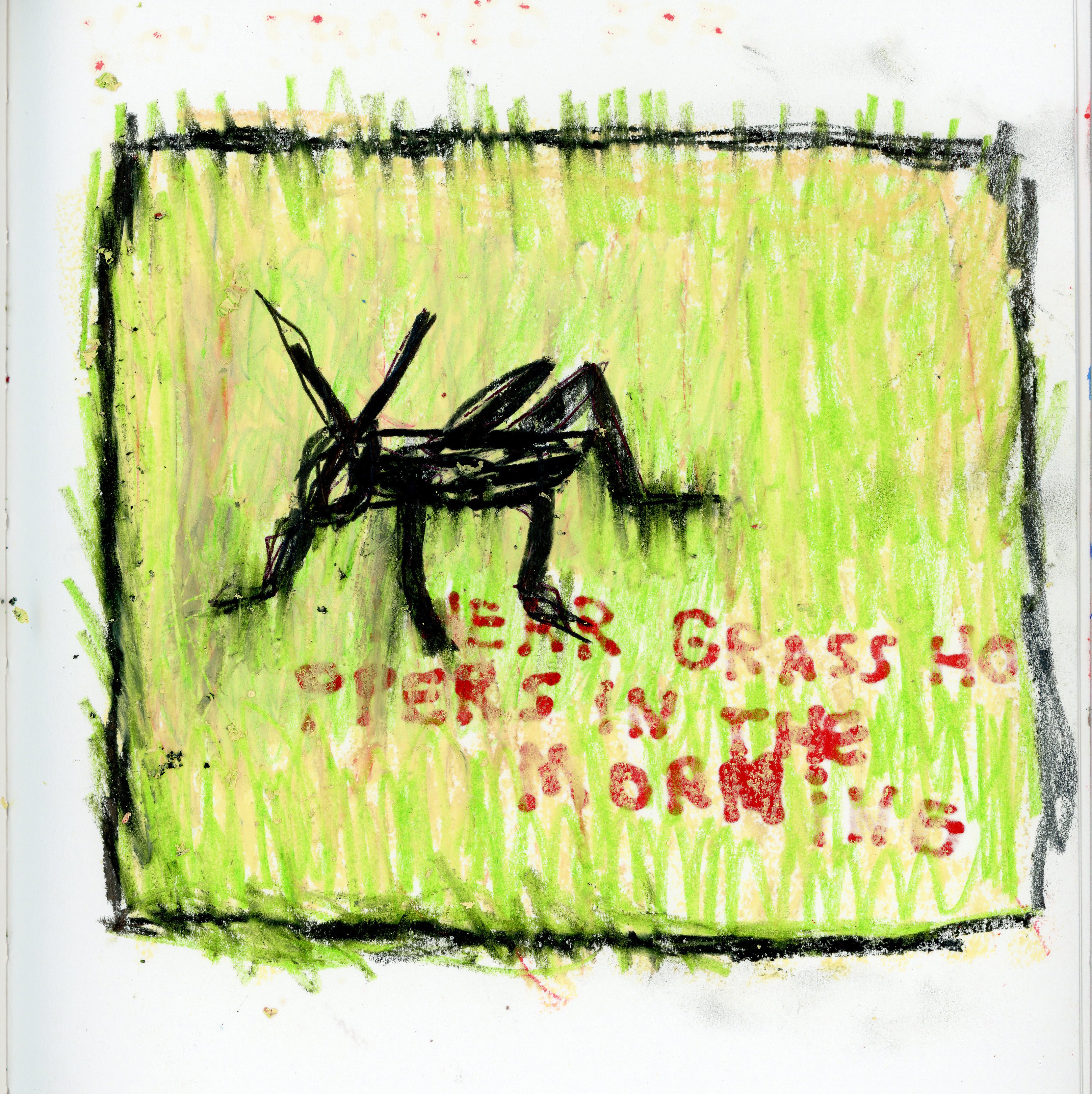 I hear grasshoppers in the morning