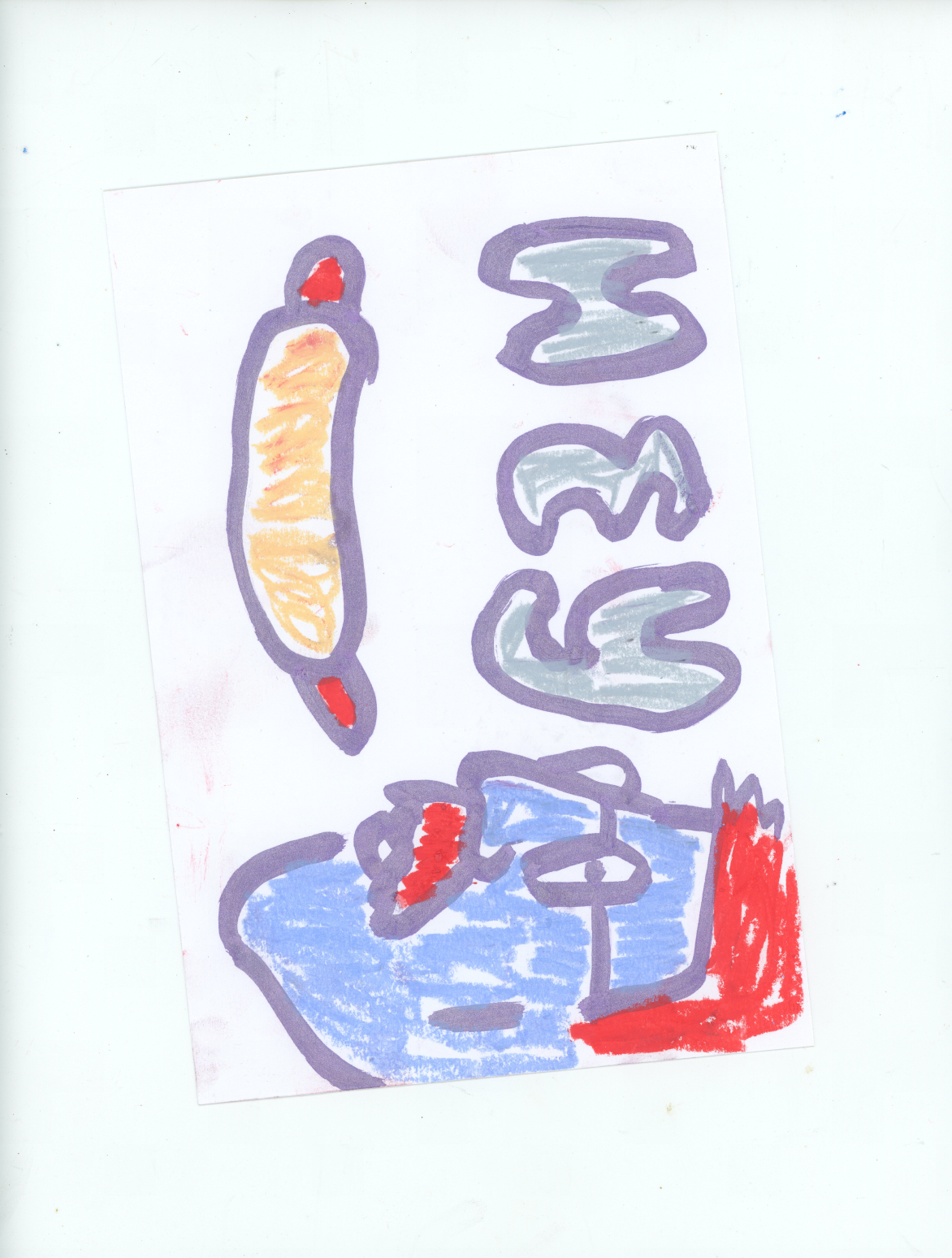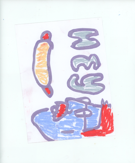 This is a stupid drawing of a man and a hot dog. I was testing out a metallic posca marker. Good news. It can draw a man and a hot dog.