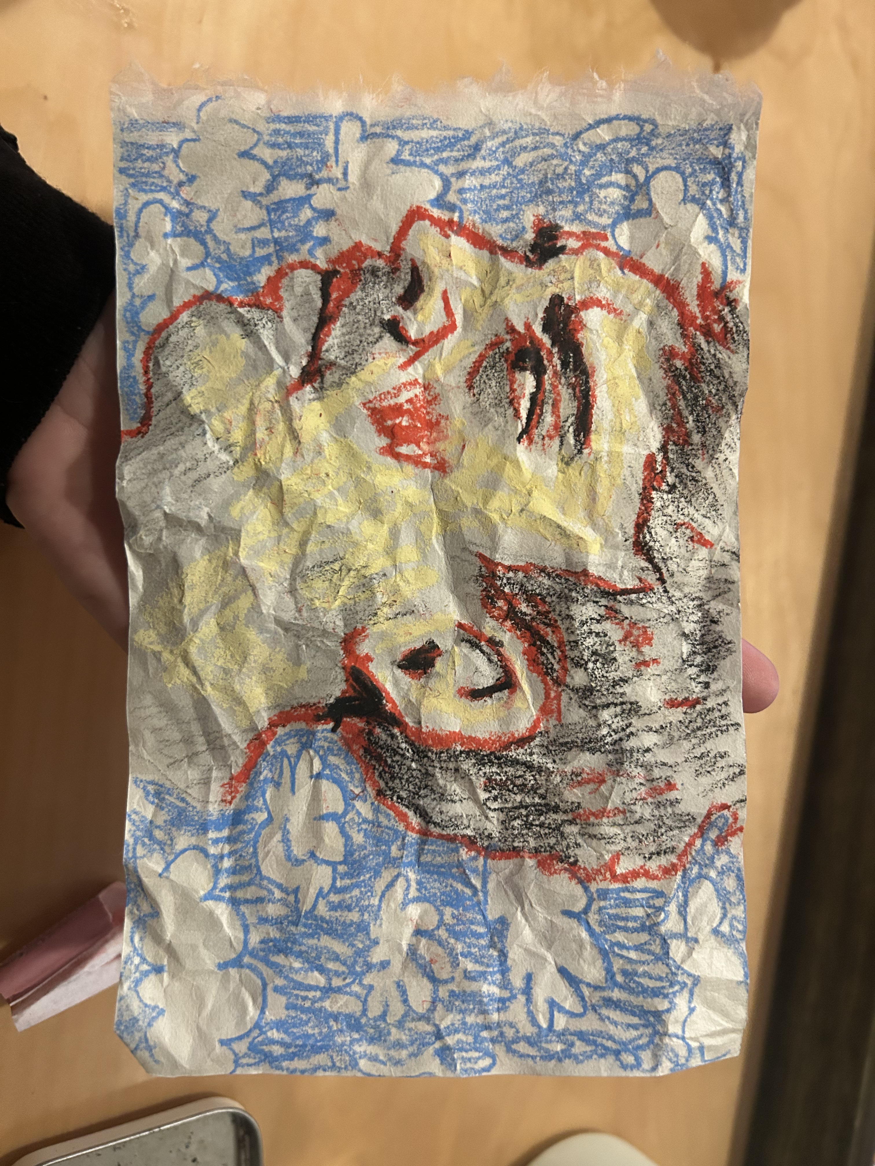 For my birthday, I got a bunch of paper samples! Woah! This was a cool woven paper that alllllmost feels like a fabric. SO i drew on it and then crumpled it up and it looks pretty cool.
