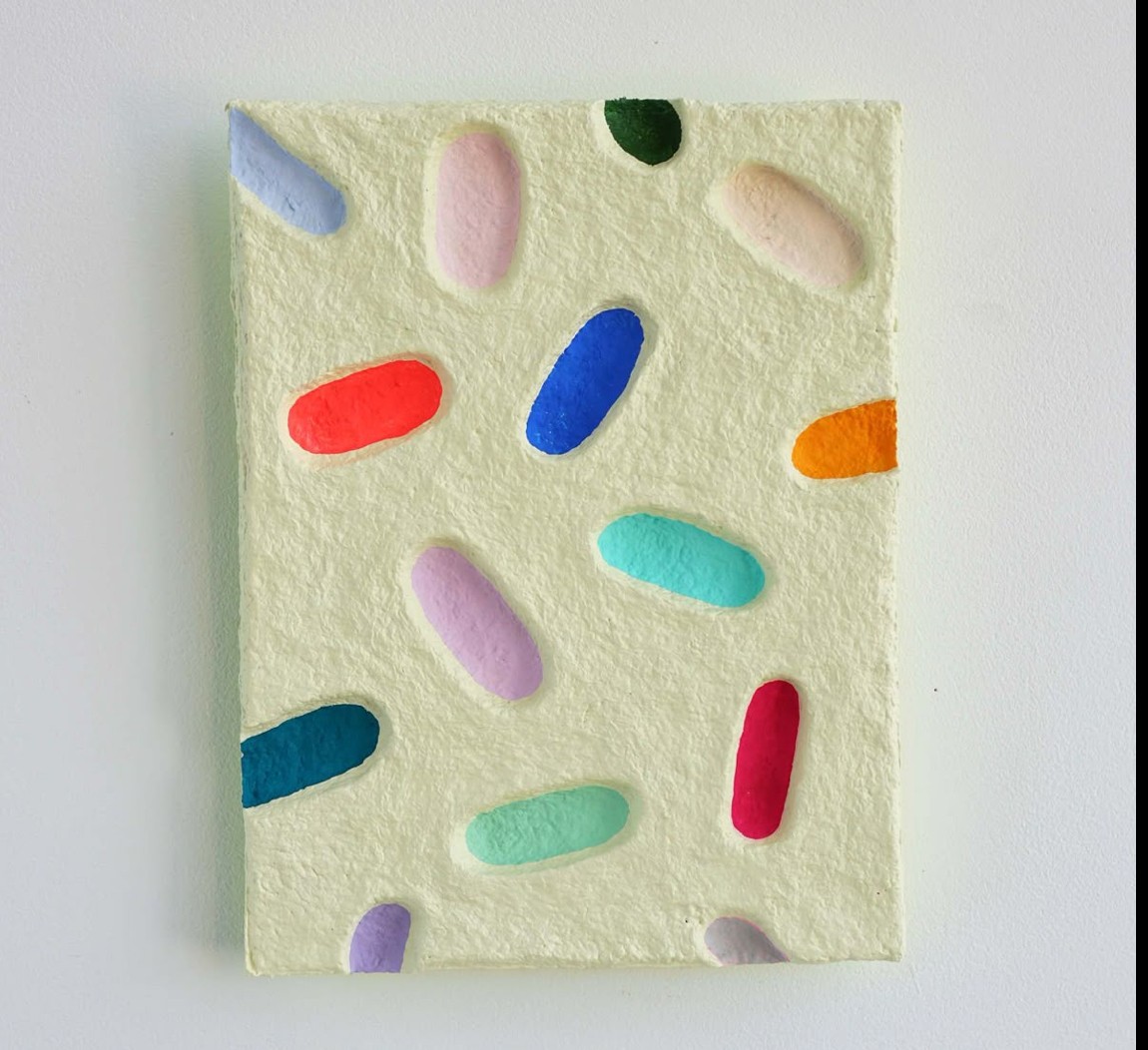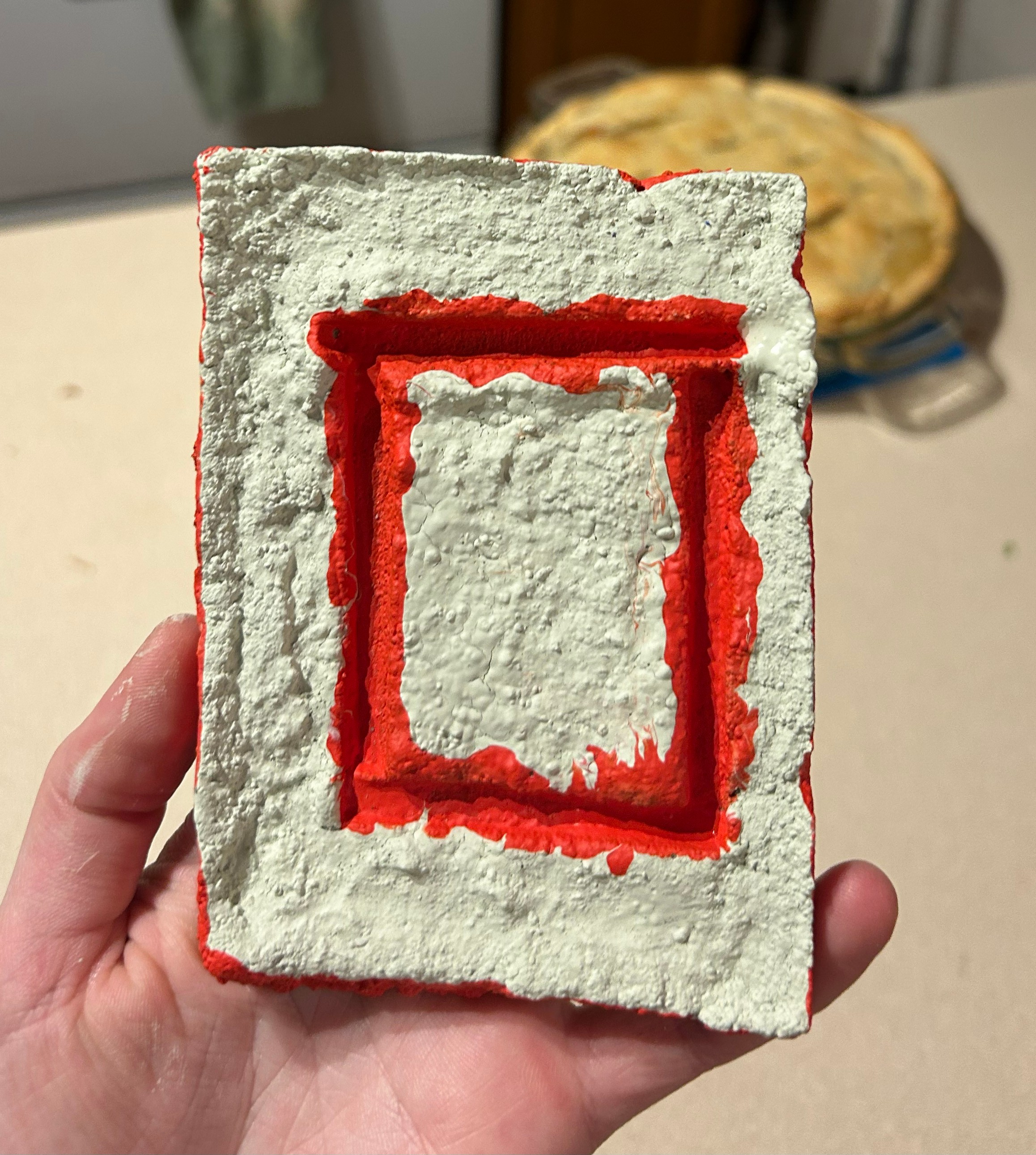 I got this idea from seeing this photo- this is done by artist duo Adam Frezza & Terri Chiao. They call this a pulp painting. I really like the shadows mixing with the color divots in this and I decided to try my hand, but with concrete.