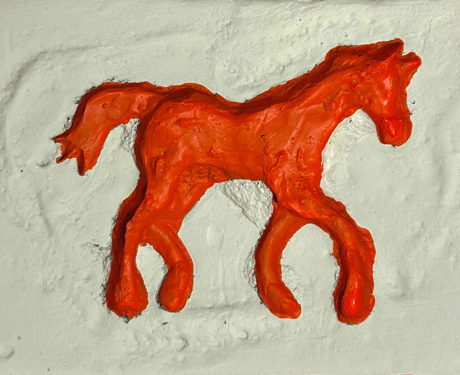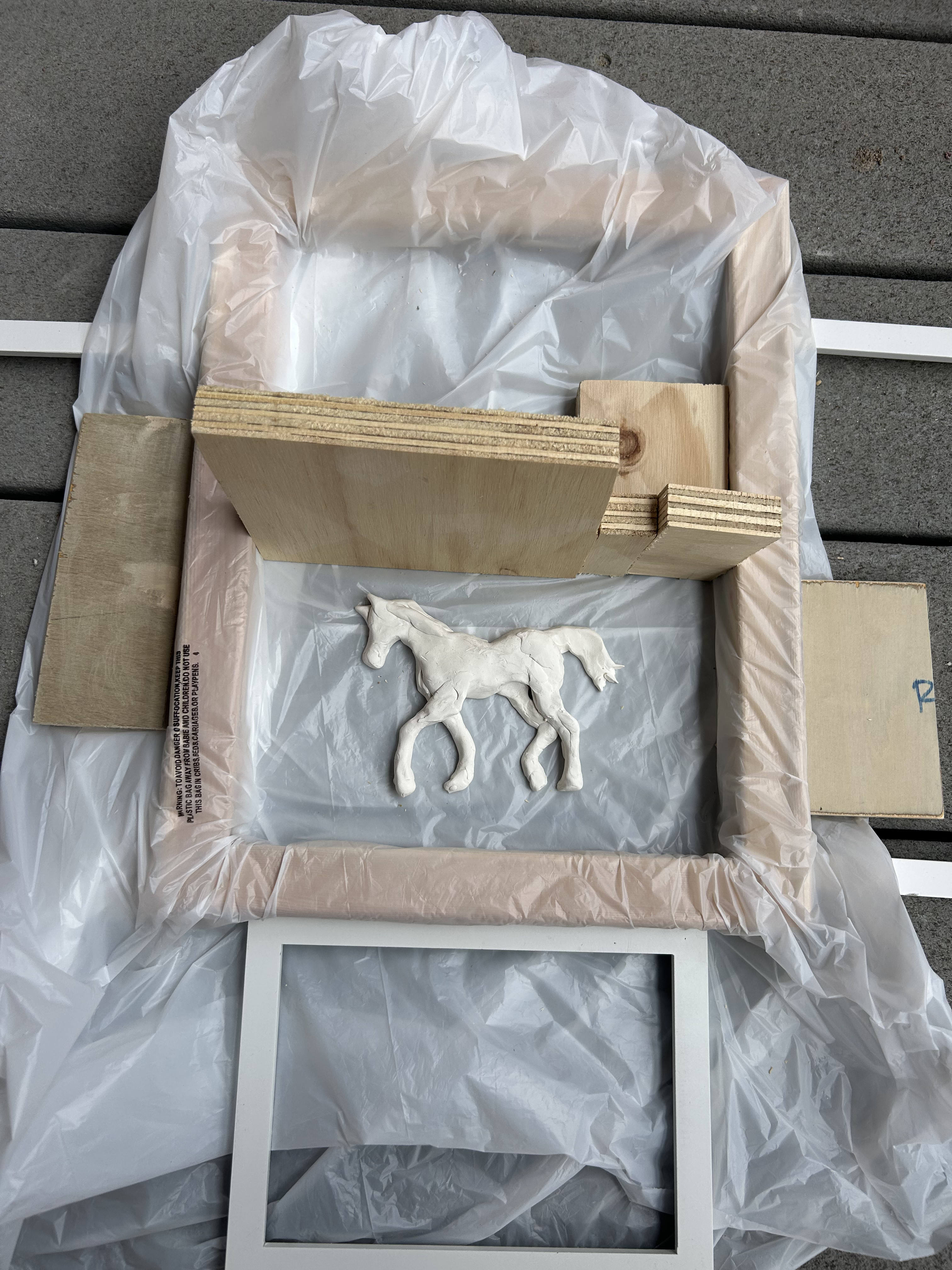 To make this, I made a horse out of oven clay, and put it into concrete.
