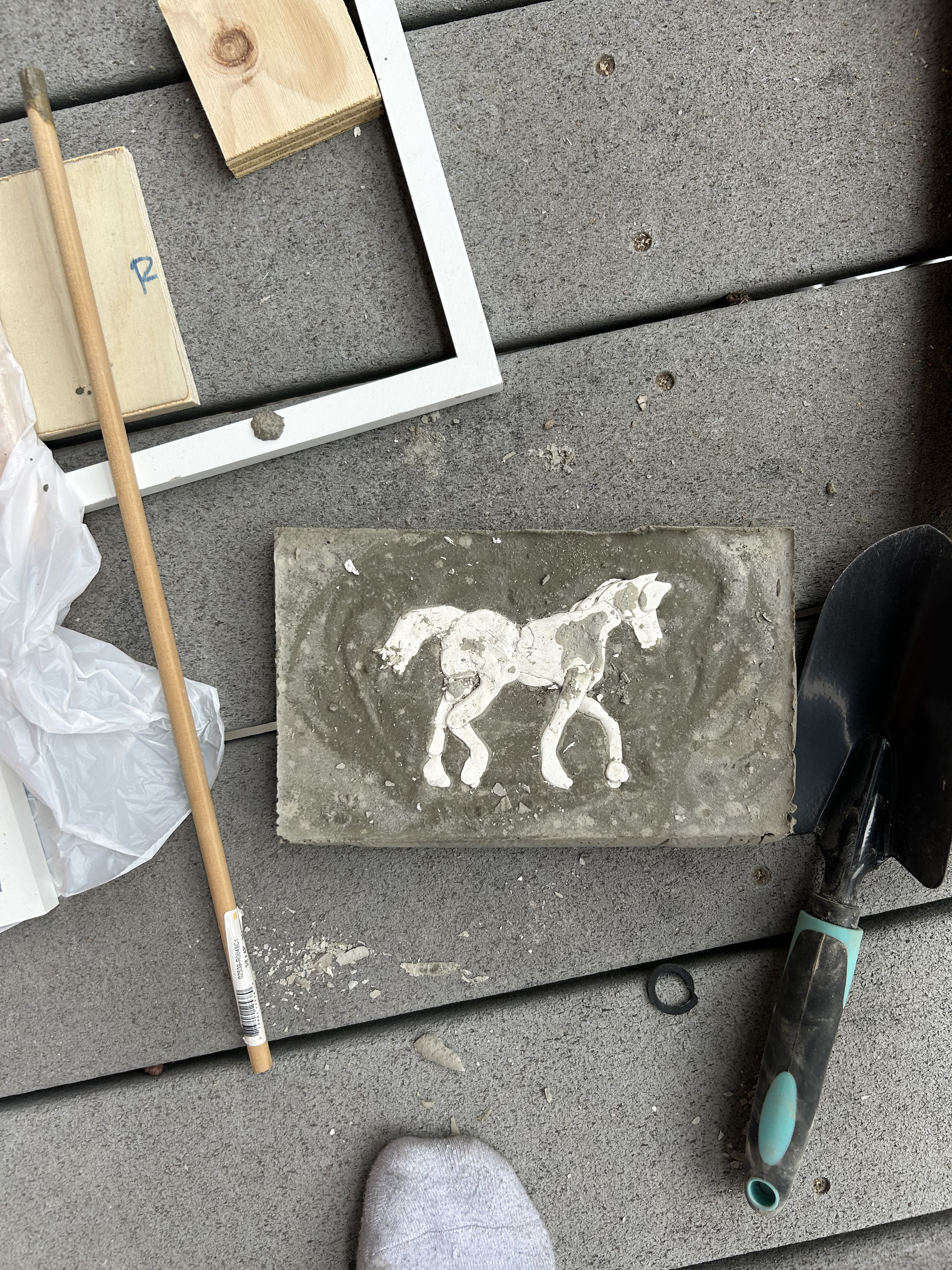 Now I have a slab of concrete with a horse shaped hole in it that I painted. Very good