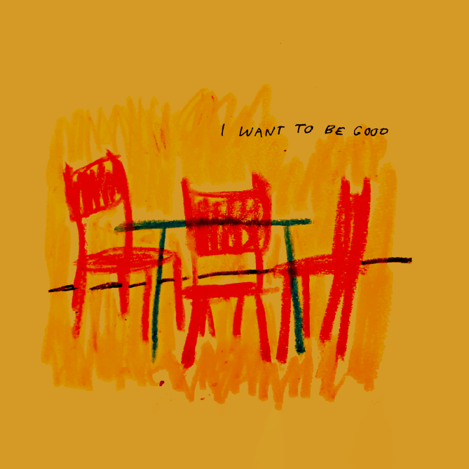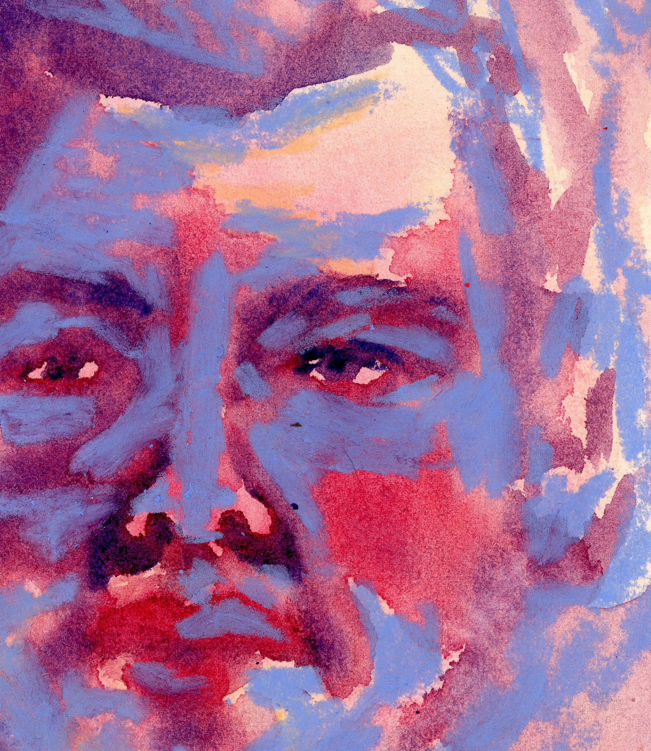 Watercolor man from my brain with oil pastel on top. Painting inside of a coffee shop is a very fun experience. Is everyone looking at me? Are the baristas mad?