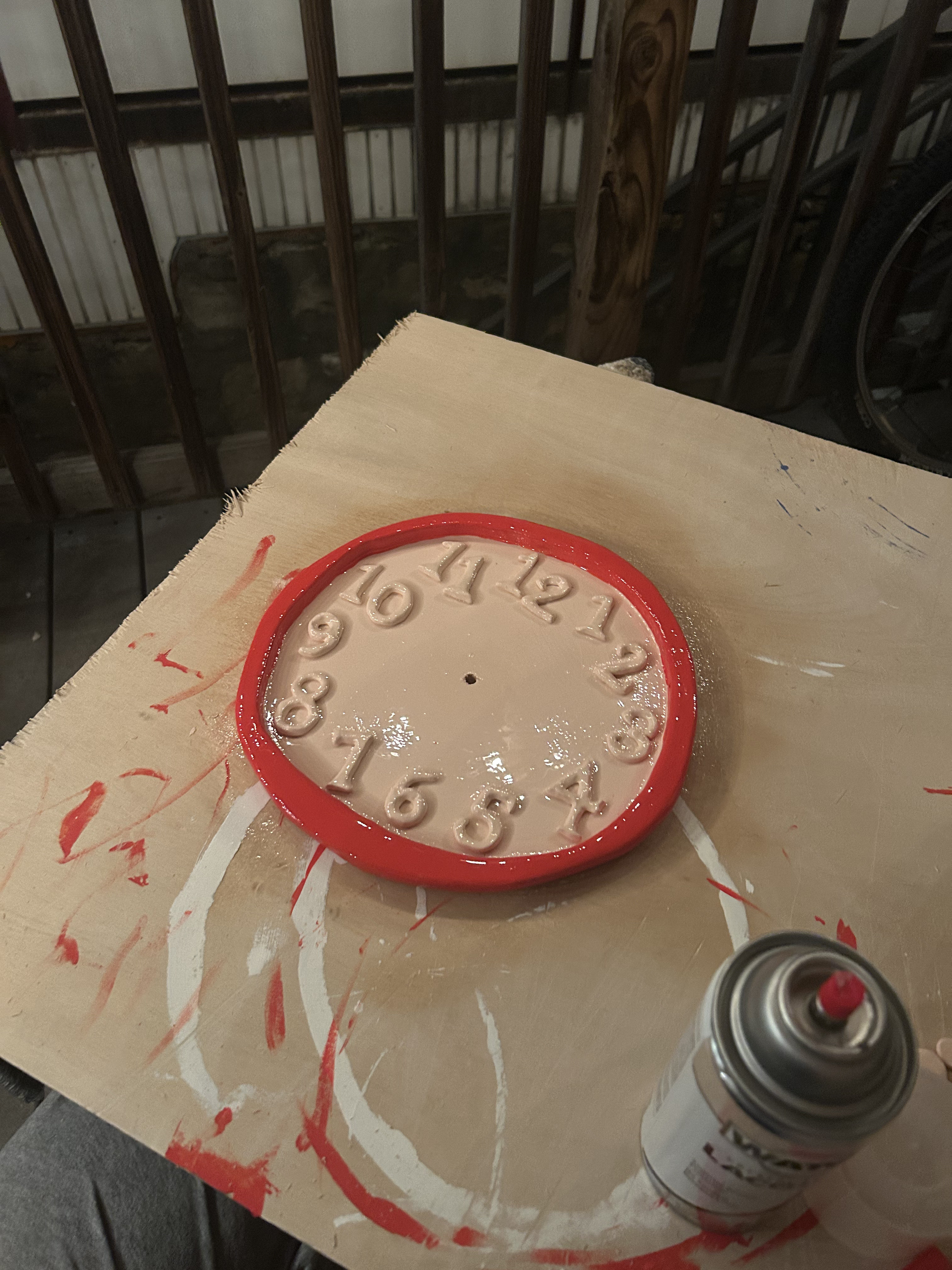 This is a clock I made out of wood and clay. I am not 100% done with it, but I am for now. (I want to eventually make different hands). I made the base and the rim part out of wood (i can cut wood in a better circle than that i swear i swear i swear. but I wanted it to look kind of clay and clunky.) I made the numbers out of oven clay, glued them, and sprayed it all with lacquer over a course of many days. I am not sold on this... but I think it will eventually be cool.