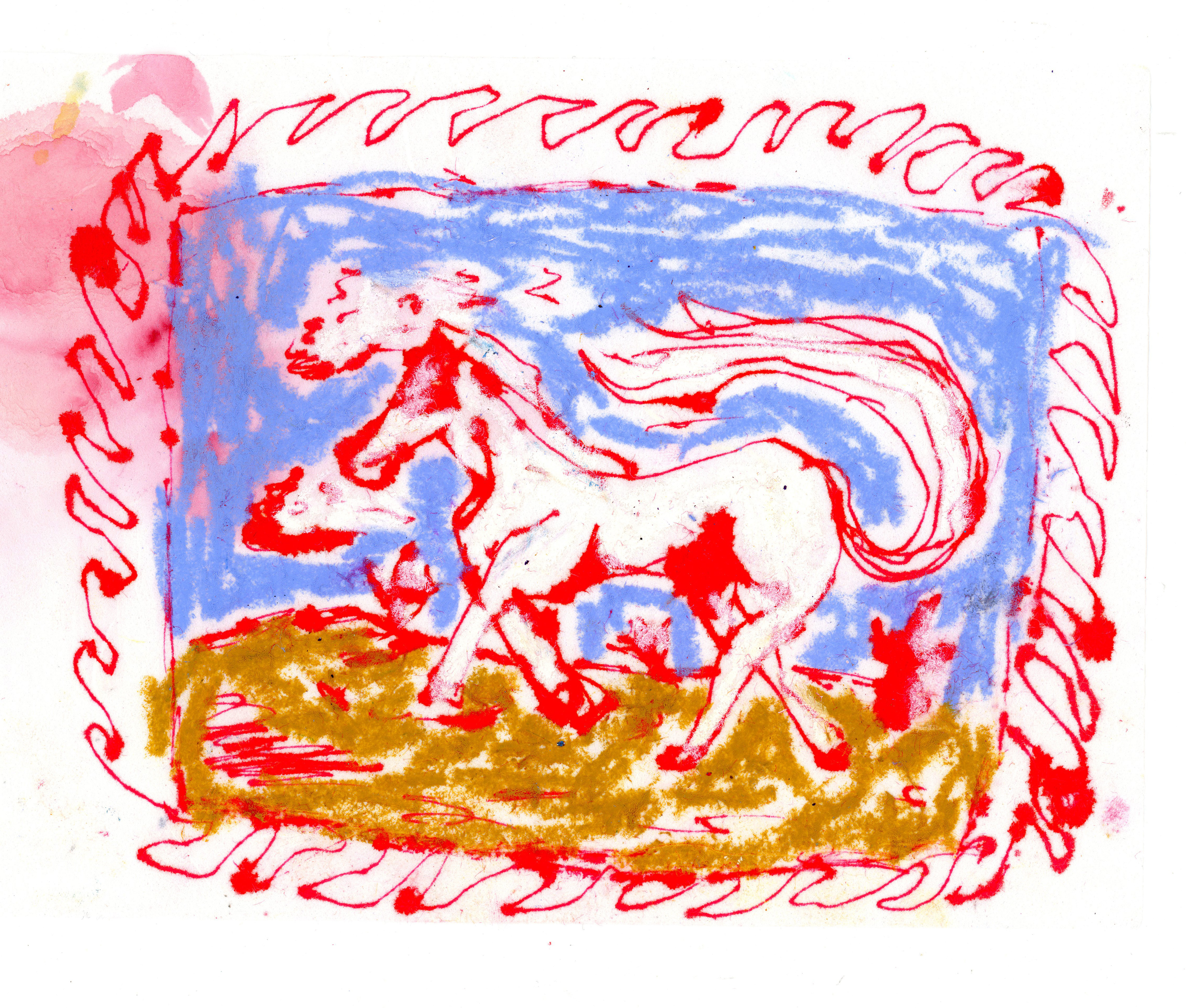 Shitty horse from memory with a fountain pen on some really soft weird paper. It bled really nicely. And of course... oil pastel. When I am feeling uninspired, oil pastels always get me amped back up.